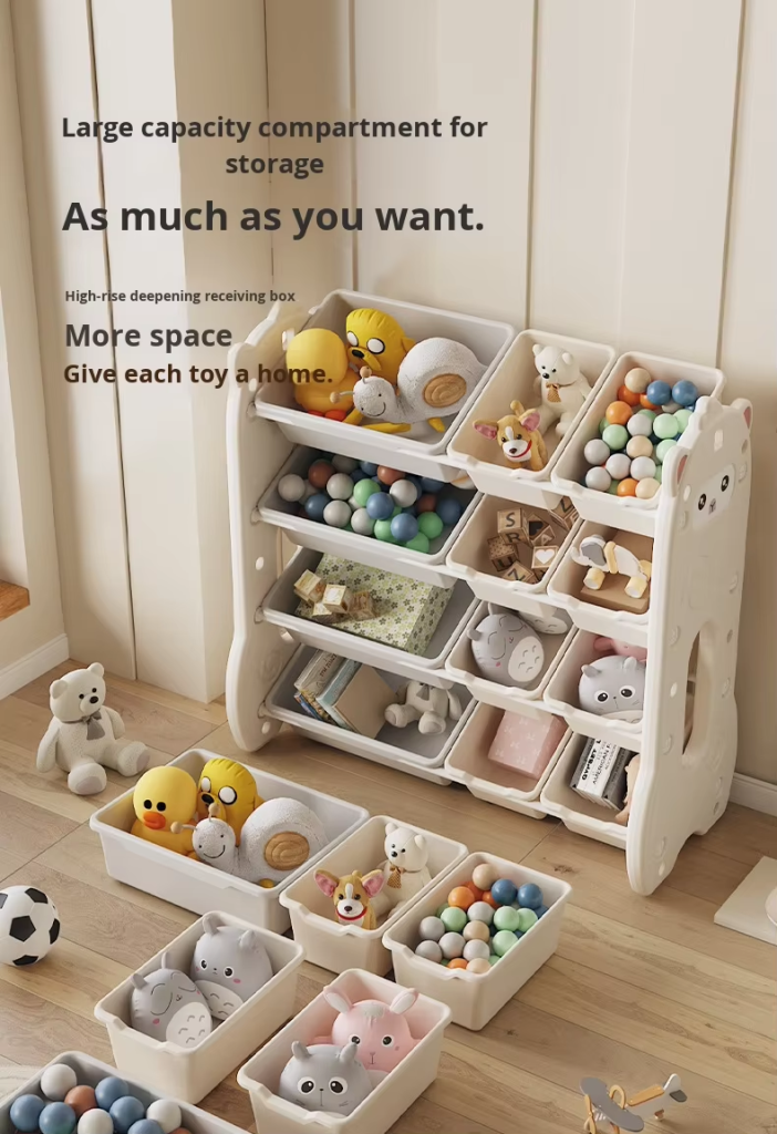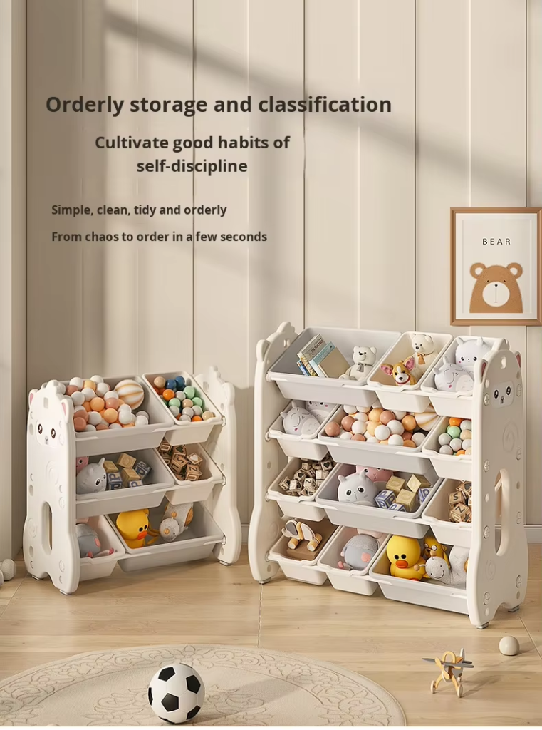 This wall-mounted multi-layer kids toy storage cabinet with drawers offers large capacity to organize toys, books and baby essentials. It helps save floor space, keeps the living room neat and tidy, features safe design for children, easy installation and smooth drawers, making daily cleanup simple and efficient for busy families.