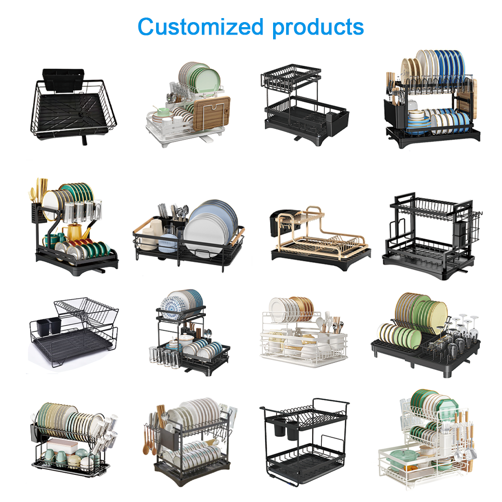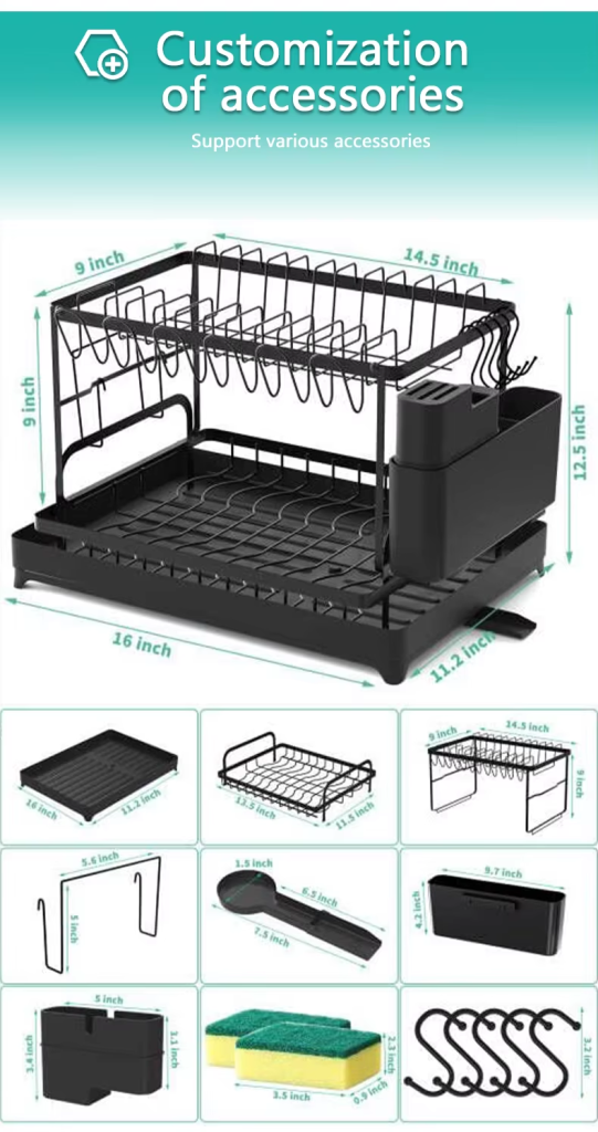 This 2-tier counter sink dish rack with cutlery trays is designed for kitchen organization: it neatly holds dishes, utensils, and tools while its draining design prevents water buildup. Sturdy, rust-resistant metal ensures durability, and its compact size fits most countertops or sinks. We offer flexible wholesale orders with low MOQs, fast delivery, and customized packaging—ideal for retailers needing practical, high-demand kitchen storage solutions