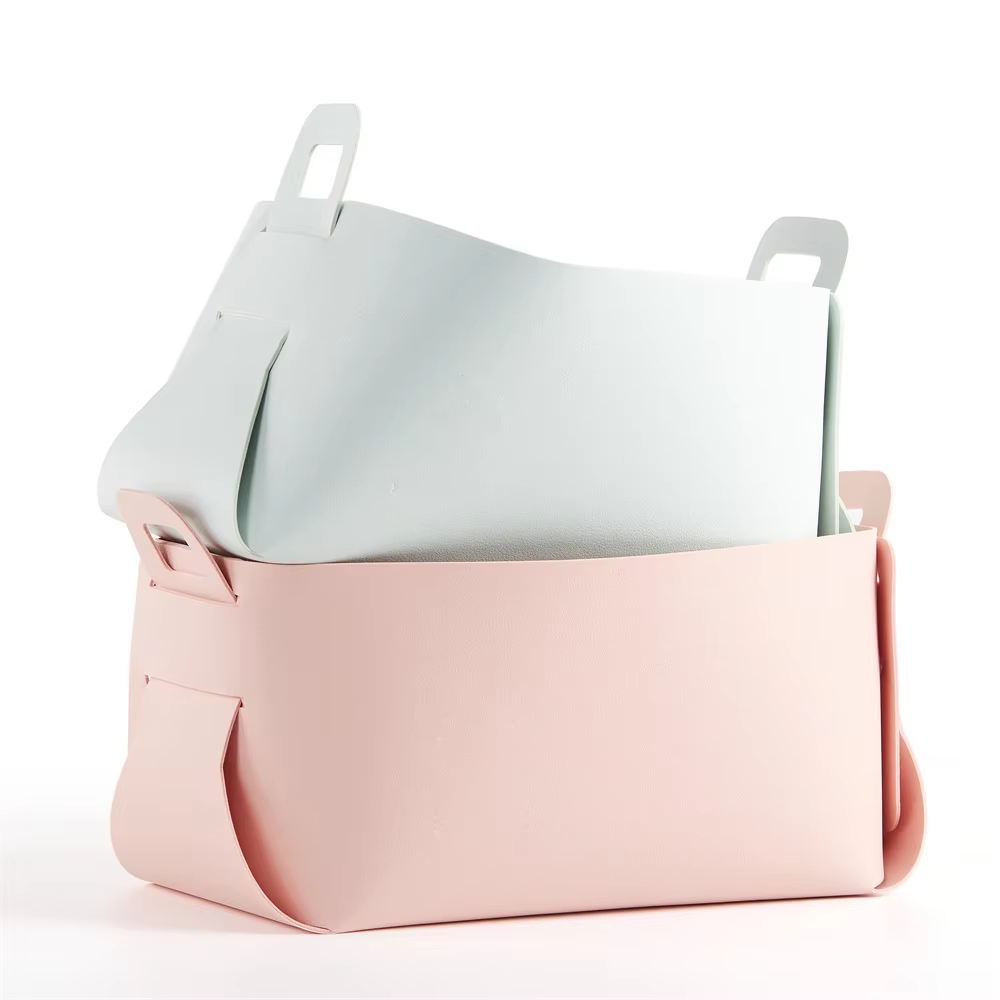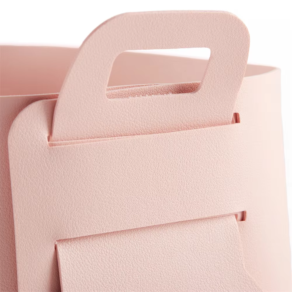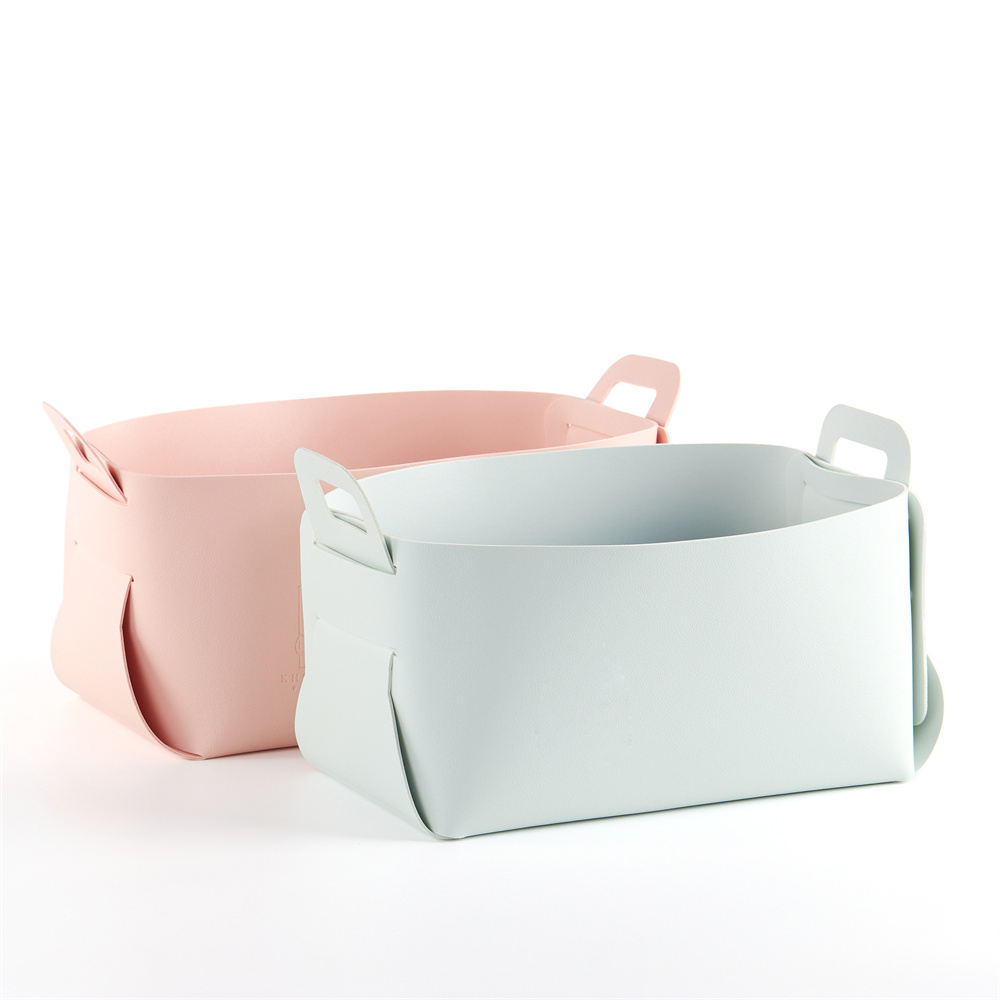 This foldable modern PU leather jewelry storage basket blends style with practicality. Soft yet durable PU leather protects valuables; compact when folded for space-saving. Sleek design fits home decor, ideal for rings, necklaces & earrings. Factory direct, supports wholesale and customizations—perfect for B2B needs.