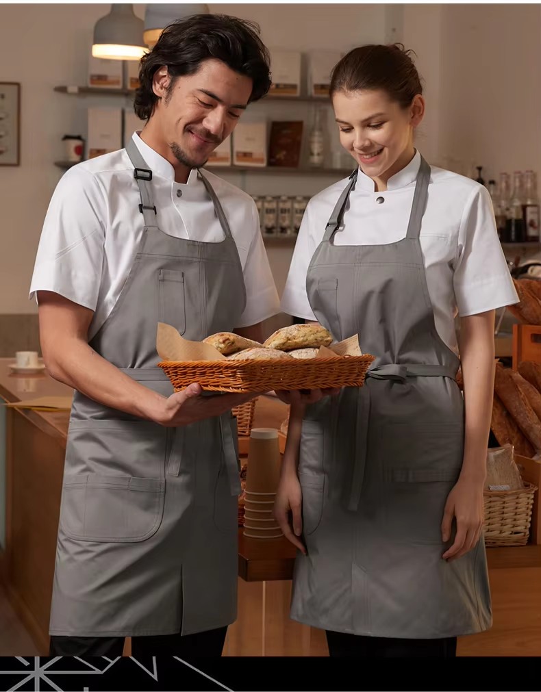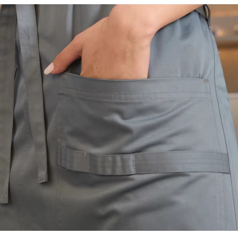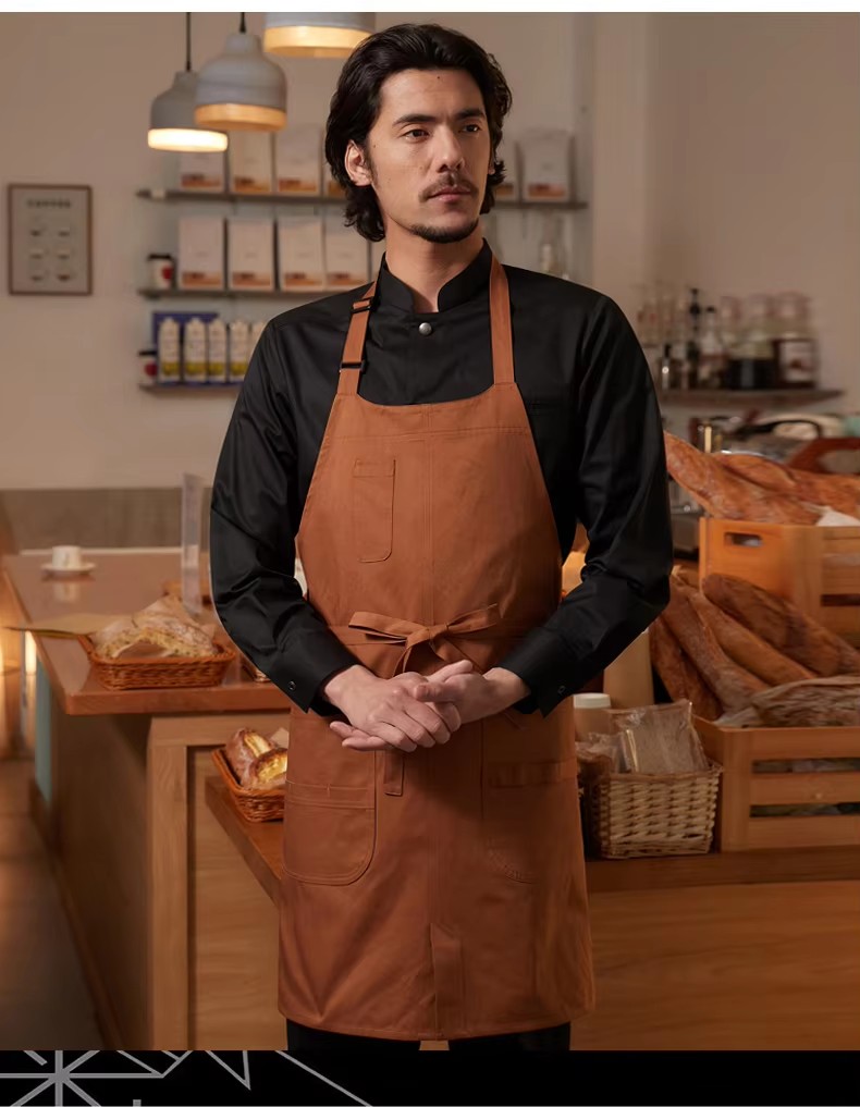 This stylish long-sleeve kitchen apron is crafted from soft, breathable cotton blend canvas for durable daily use. Features delicate embroidery, a comfortable fit, and easy-wash fabric that resists stains. Designed for both men and women, it keeps you clean while cooking, baking, or hosting. A practical and fashionable addition to any household kitchen.