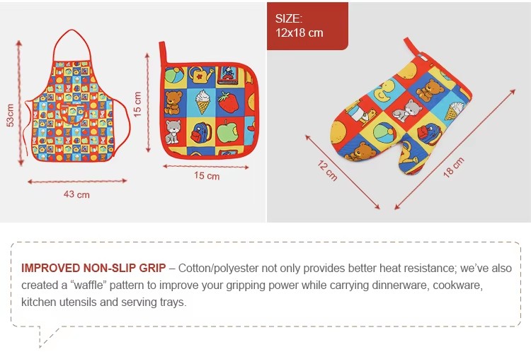 Cute Cartoon Pattern Kids Kitchen Apron & Mitt Set