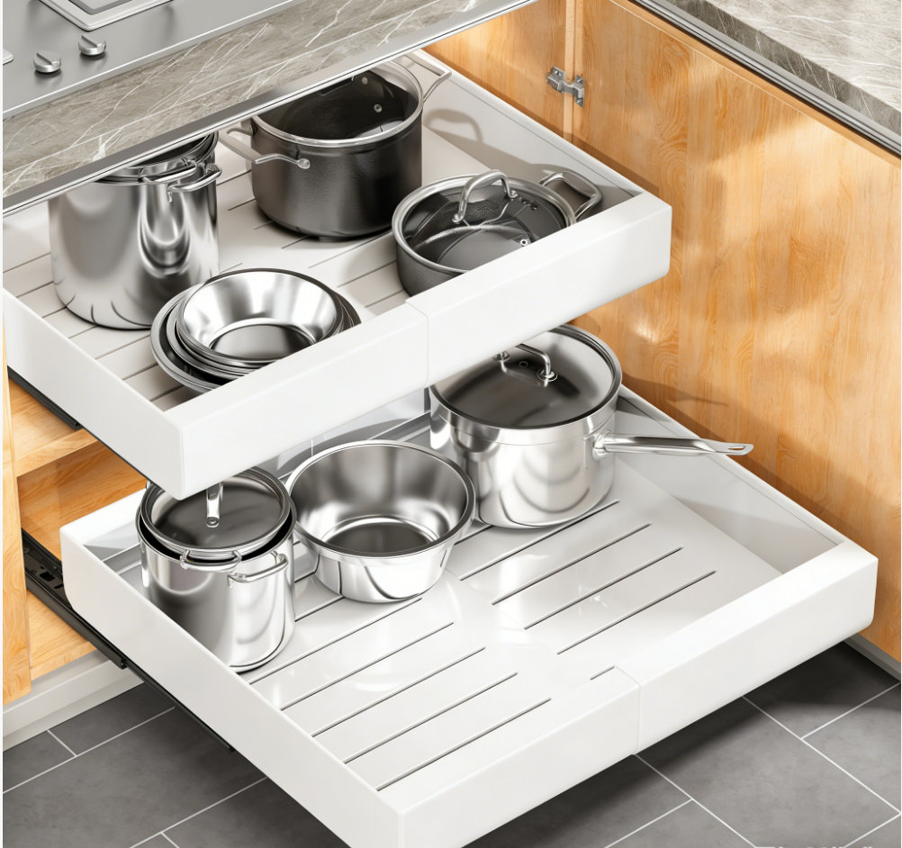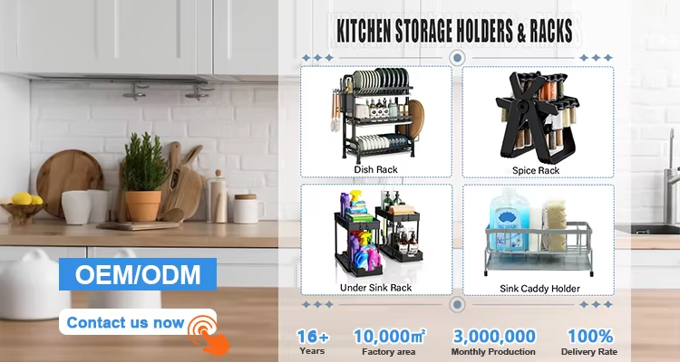 This expandable metal pull-out kitchen cabinet organizer maximizes cabinet space with smooth sliding rails, neatly storing dishes, utensils and kitchen essentials. Sturdy, rust-resistant and easy to install, it fits most cabinet sizes seamlessly. We offer flexible wholesale and custom orders with low MOQs, fast delivery—ideal for retailers seeking practical kitchen storage solutions.