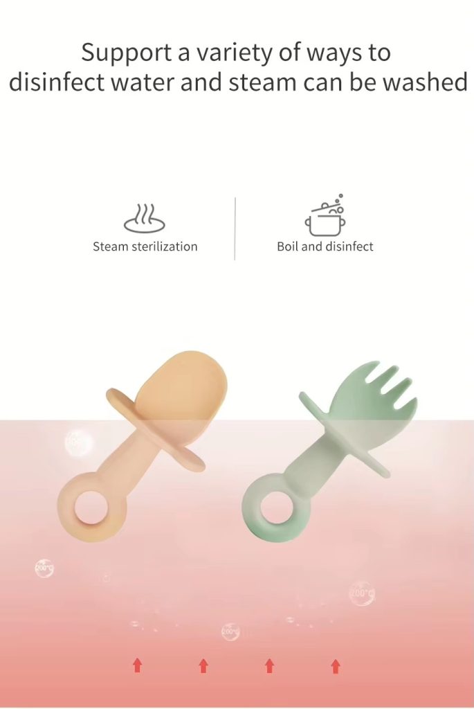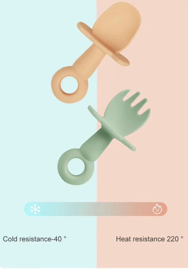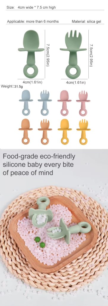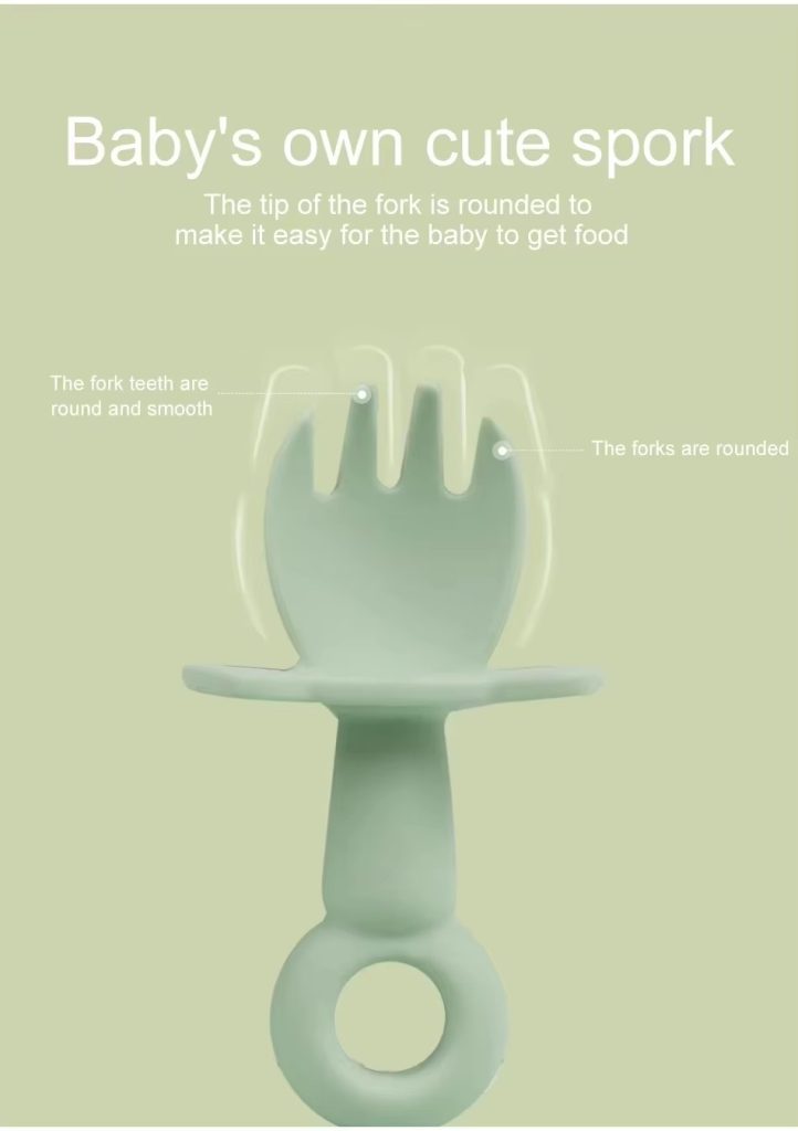 BPA Free soft silicone baby spoon and fork set, specially designed for toddlers and kids. Safe, gentle on gums, durable, and easy for small hands to grip. Perfect for self-feeding and daily use. Non-toxic, food-grade material ensures baby’s safety. Ideal for home and travel. Wholesale available for bulk orders with reliable quality and fast delivery.