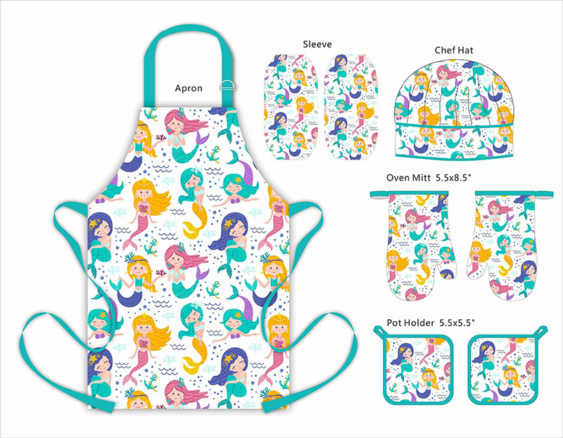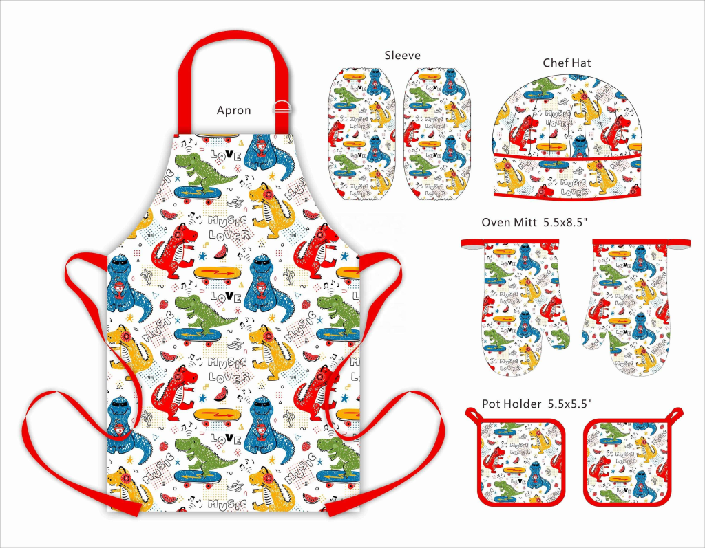Kids Kitchen Apron Hat Waterproof Comfort Fit Kitchen Pocket Set